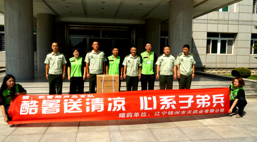 31日公司黨委王書記,本天藥業(yè)質(zhì)量主管裴經(jīng)理與公司營(yíng)銷中心人員,一起到錦州市武警總隊(duì)和葫蘆島市武警總隊(duì)進(jìn)行了擁軍慰問,并向廣大官兵贈(zèng)送了價(jià)值數(shù)萬(wàn)元的防暑降溫藥品,受到了廣大武警官兵的熱烈歡迎。